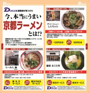 京都のラーメン店を中心に、お得な情報をご紹介します。